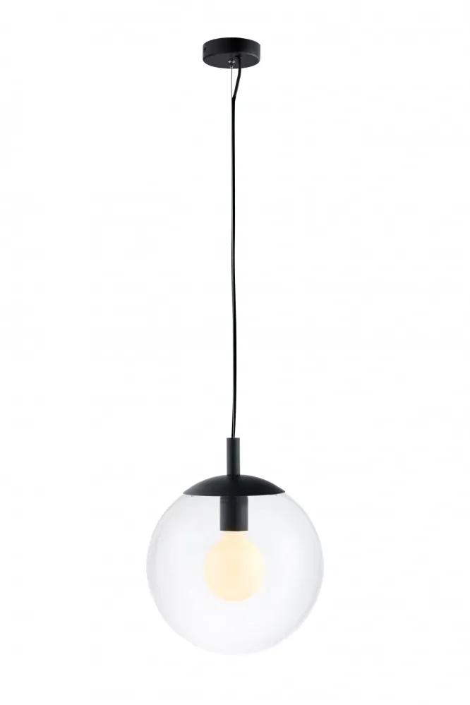 Kaspa 10731102 ALUR S - Závěsné svítidlo s kulatým transparentním stínidlem, černé prvky, 1 x E27, Ø 25cm
