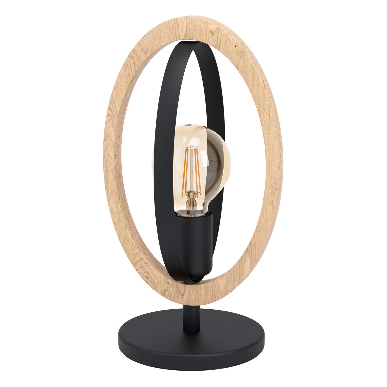 Eglo 43464 BASILDON - Originální stolní lampička v kombinaci světlého dřeva s černými prvky, 1x E27, s vypínačem na kabelu