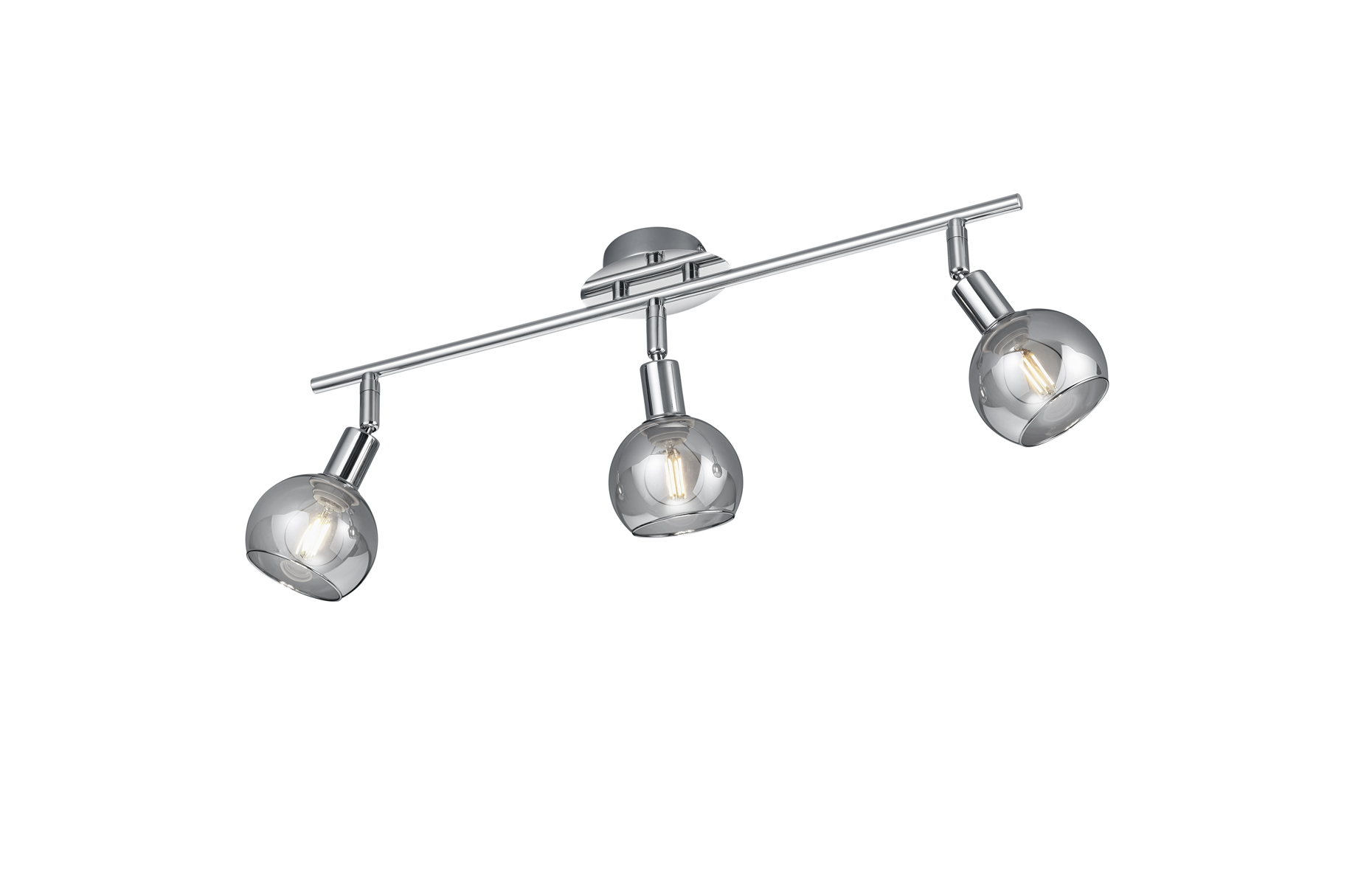 Materiál svítidla je lesklý chrom, stínidla z kouřového skla.
