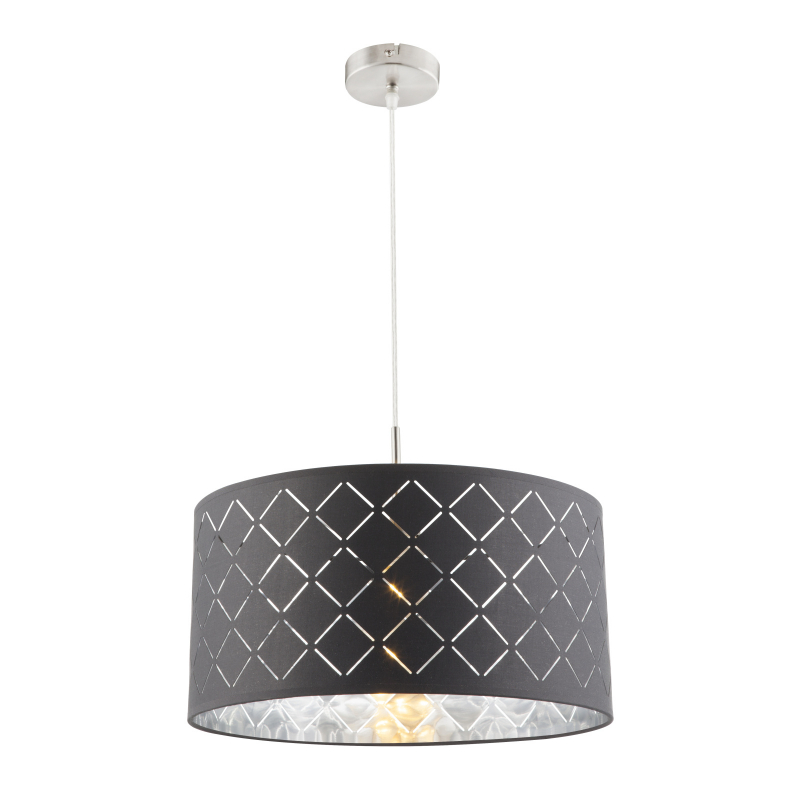 Globo 15228H KIDAL je moderní závěsný textilní lustr v elegantním šedém provedení, který kombinuje jednoduchý design s příjemným rozptylem světla. Konstrukce z kovu v matném niklu působí nadčasově a textilní stínidlo s dekorativní perforací dodává svítidlu jemný a zajímavý detail. Skvěle se hodí nad jídelní stůl, do obývacího pokoje i kuchyně.