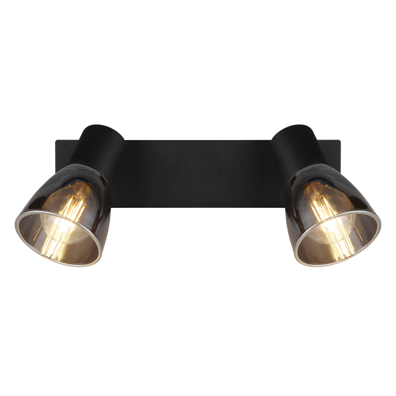 Globo 54307-2 CLAUDE - Nástěnná dvouramenná lampička v černé barvě s kouřovými skly, vypínač, 2 x E14