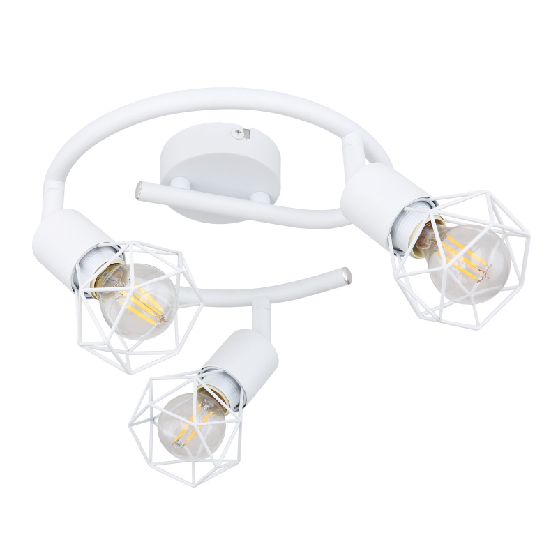 Globo 54802W-3 XARA je stropní retro bodové svítidlo v bílé barvě, které propojuje industriální styl s čistým a svěžím vzhledem. Kovové drátěné klece kolem žárovek dodávají svítidlu moderní retro charakter, zatímco bílé provedení zajišťuje univerzální využití v různých typech interiérů.