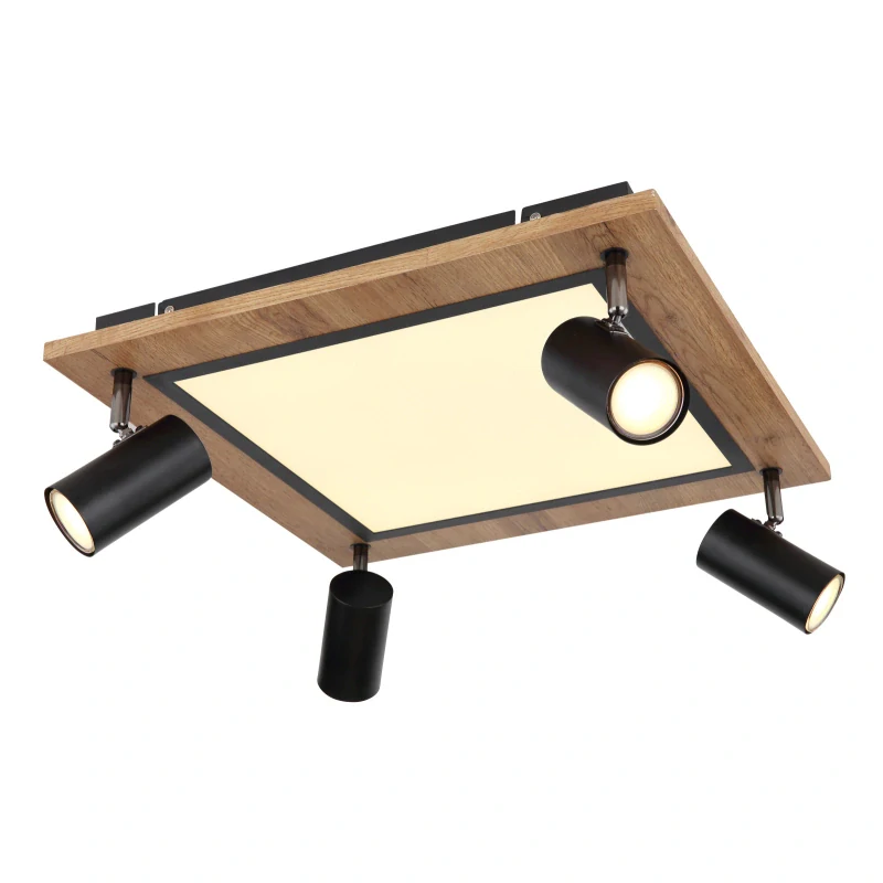Globo 67306D2 ULLA - LED stropní svítidlo v černé barvě s MDF dřevem a natáčecími bodovkami, LED 24W + 4 x GU10, 3000K, 45 x 45cmK odeslání za 3-5 dnů4 660,00 Kč/ ks3 851,24 Kč bez DPH