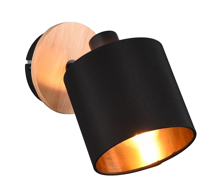 Trio Leuchten R81331030 TOMMY - Nástěnná lampička v imitaci dřeva s textilním stínidlem 1 x E14 / černo zlatá