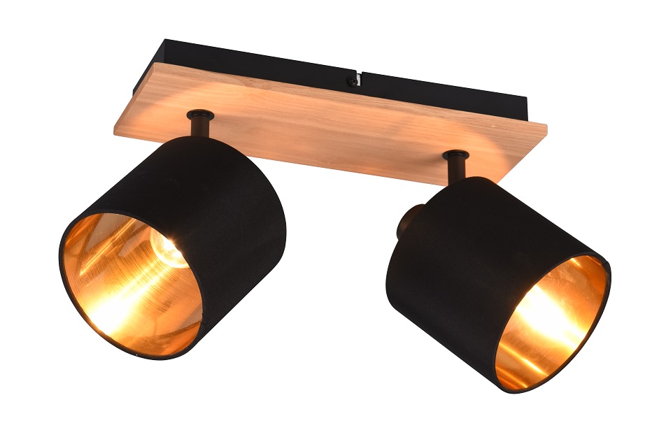 Trio Leuchten R81332030 TOMMY - Stropní svítidlo v imitaci dřeva s textilními stínidly 2 x E14 / černo zlatáVíce kusů do 14 dnů --- ihned k odeslání 1 ks867,00 Kč/ ks716,53 Kč bez DPH