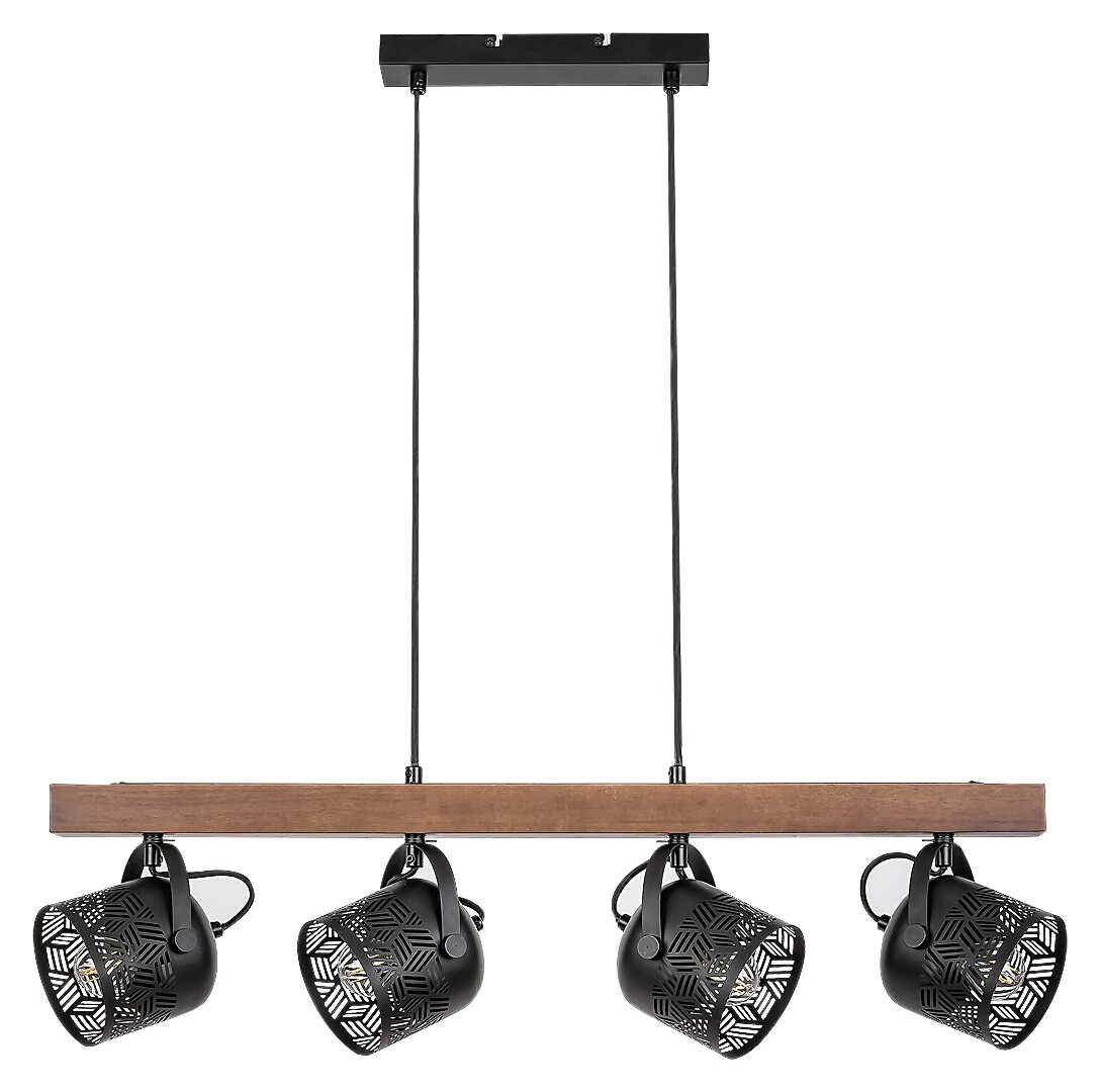 Rabalux 3300 ROTEM - Závěsný lustr s dřevěnou lištou a kovovými stínidly, 4 x E14, 75cm