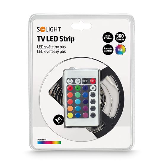 Solight WM55 - LED světelný pásek, RGB, sada s 12V adaptérem a dálk. ovladačem, 3 metry, 7,2W/m, IP20