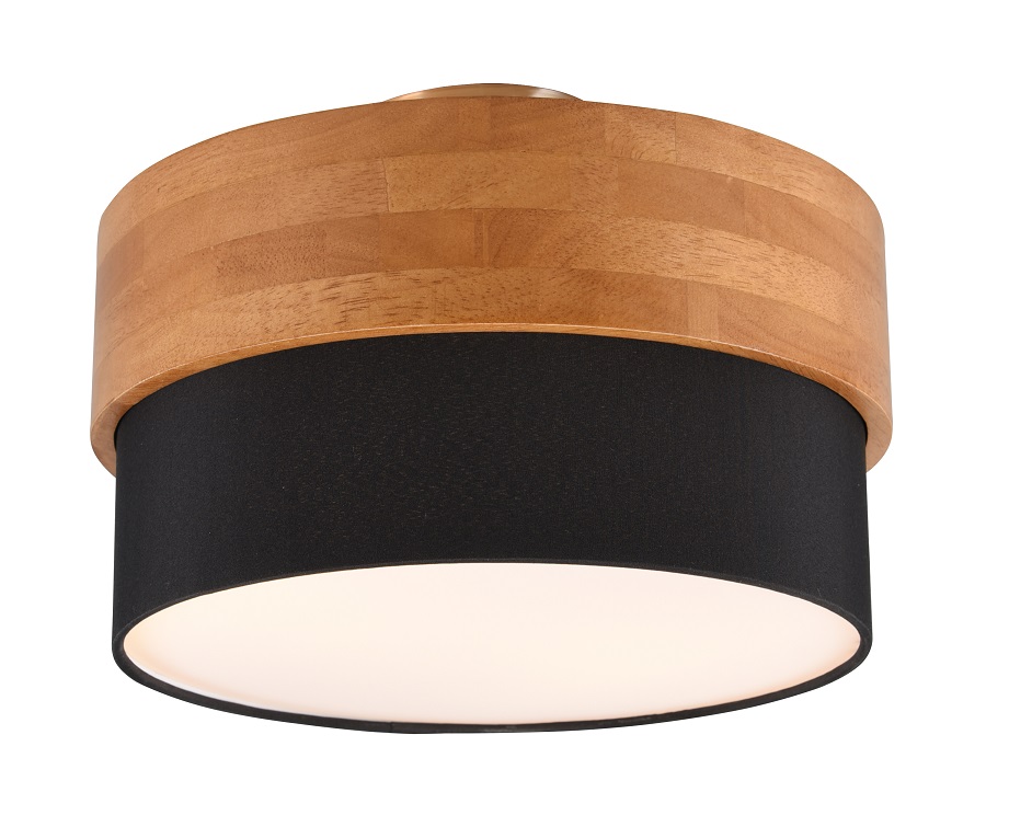 Trio Leuchten 611500202 SEASONS - Stropní dřevěné svítidlo s černým textilním stínidlem, 2 x E14, Ø 30cm