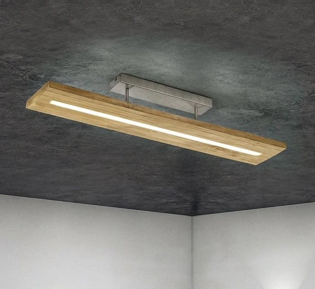 Trio Leuchten 623710130 BRAD je moderní LED stropní svítidlo z přírodního dřeva, které spojuje minimalistický design s hřejivým vzhledem přírodního materiálu. Díky šířce 100 cm je ideální do jídelny, nad stůl, do pracovny nebo většího obývacího prostoru, kde zajistí rovnoměrné a příjemné osvětlení.