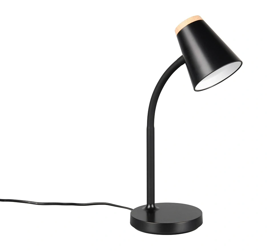 Černá stolní lampička na čtení nebo učení přináší do interiéru modernu a svěžest, snadno se kombinuje s různými styly zařízení. Husí krk umožňuje optimální nasměrování světla pro pohodlné čtení bez zbytečného namáhání očí. Černá barva navíc zvýrazňuje prostor a působí elegantně.