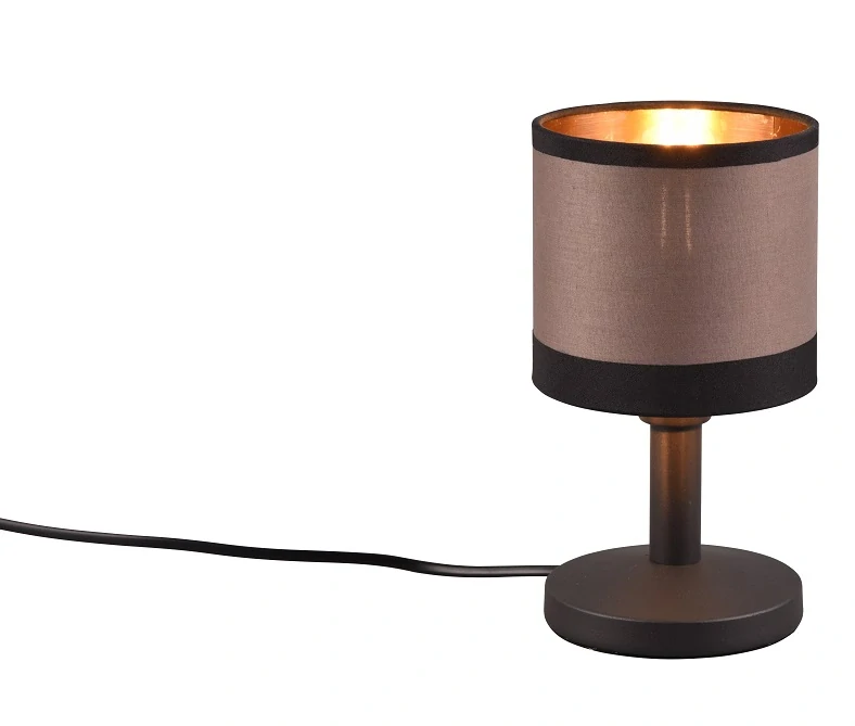 Trio Leuchten R59551041 DAVOS je moderní dotyková lampička s textilním stínidlem v hnědé barvě, která se zapíná a vypíná jednoduchým dotykem na kovovou část svítidla. Tato elegantní lampička s válcovitým tvarem a jemnou textilií vytváří příjemnou atmosféru a poskytuje teplé, útulné světlo, které je ideální pro ložnici či obývací pokoj. Díky svému čistému designu v matné černé a taupe odstínu se snadno sladí s různými styly interiéru, zatímco zlatavý vnitřek stínidla přidává luxusní efekt a jemné odlesky světla.